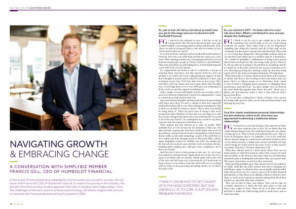 In the world of financial planning , adaptability and innovation are crucial for success . We sat down with Francis Gill , CEO of Humboldt Financial , to explore his journey in the industry , the growth of his firm and the modern approach they take in building client relationships . From the challenges of the early years to embracing technology , Gill shares insights that are sure to resonate with financial planners aiming for growth in 2024 .