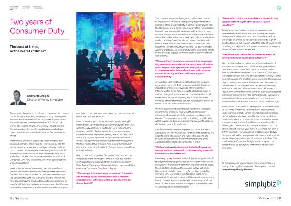 To discuss managing Consumer Duty requirements, or for any other regulatory queries, please get in touch at compliance @ simplybiz. co. uk.