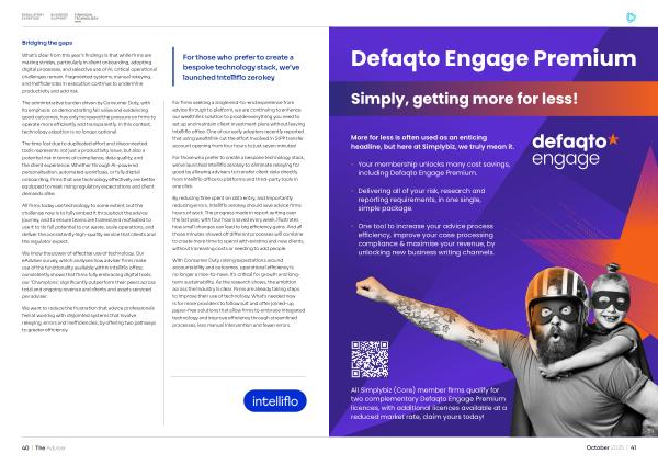 With Consumer Duty raising expectations around accountability and outcomes, operational efficiency is no longer a nice-to-have. It’ s critical for growth and longterm sustainability. As the research shows, the ambition across the industry is clear. Firms are already taking steps to improve their use of technology. What’ s needed now is for more providers to follow suit and offer joined-up, paper-free solutions that allow firms to embrace integrated technology and improve efficiency through streamlined processes, less manual intervention and fewer errors.